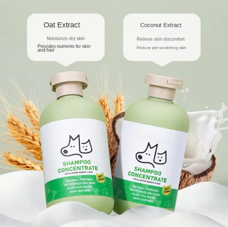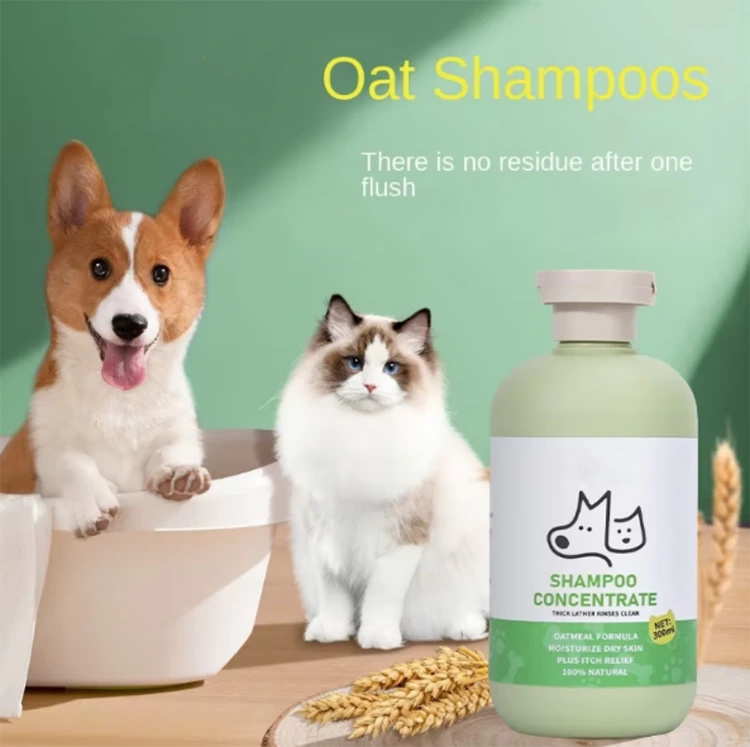 Шампунь для домашних животных с овсянкой содержит успокаивающие ингредиенты овсянки, которые могут облегчить раздражение кожи у домашних животных, создавая более здоровую и комфортную среду для их кожи и волос. Он гипоаллергенен и мягко снимает зуд, делая волосы блестящими. Наш продукт не содержит раздражающих ингредиентов и подходит для ежедневного использования.